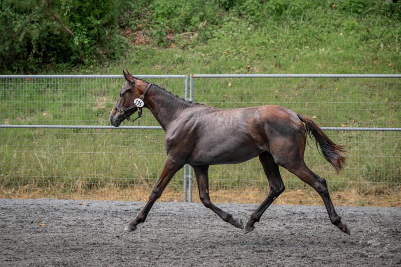 Real Eyes is a registered, microchipped, Oldenburg/ISR dark grey filly by Sir Real (Oldenburg) out of Just A Wildflower (OTTB) born on April 29, 2024. She is expected to mature around 16.2H. Izzy's sire is an exciting young dressage stallion by Sir Donnerhall I and her dam retired sound from the track as a 7 year old with 51 starts and is a eventing and lesson horse for our program. She was purpose bred for eventing, but has the potential to go in any direction. At the Oldenburg/ISR inspection, she received an 8 on movement and 7.9 on overall type. As a yearling, Izzy placed 4th at the Bred to Event Qualifier and 4th at the Bred to Event Championship. She is sweet, polite, and is calm and curious about everything around her. Izzy has been handled daily and gets plenty of turnout with a small herd.