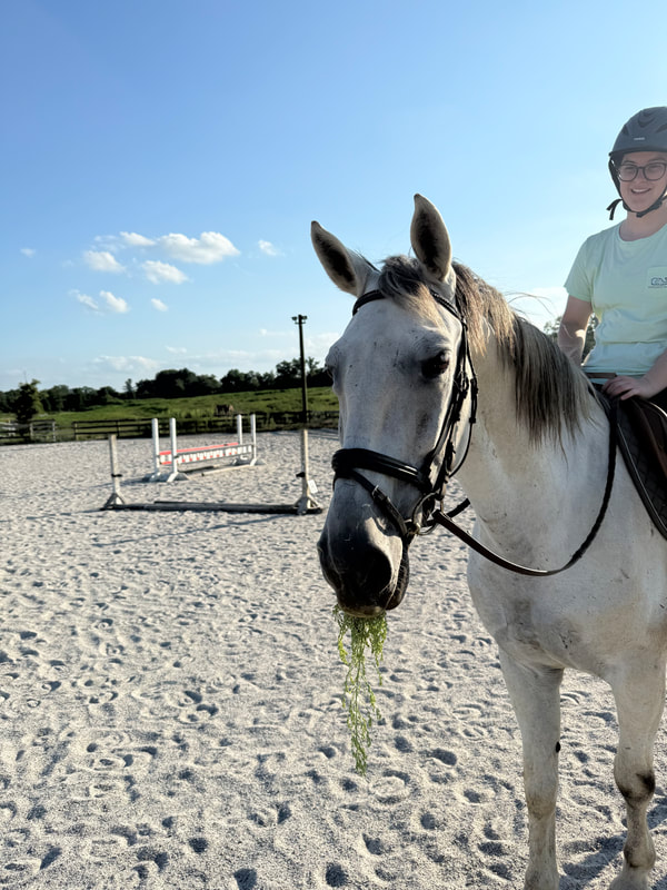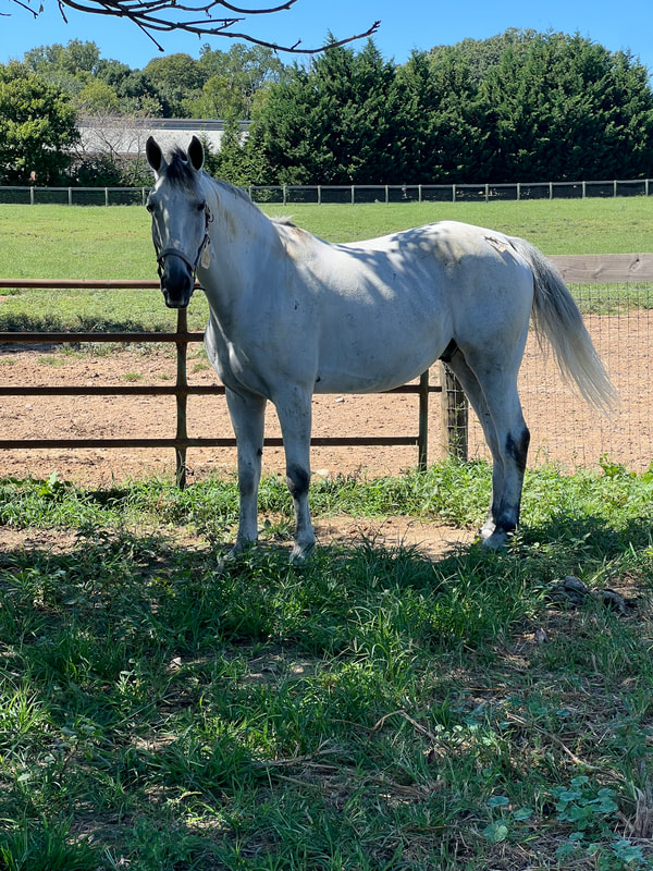 Lilo is a grey 2010 OTTB mare Ashley bought off the track in August 2017. She had a successful career as a race horse earning over $165,000 in her 6 years at the track. She is a granddaughter to Stormcat and her pedigree boasts other names like Secretariat and Northern Dancer. She has been a wonderful addition to the lesson and lease program. She is currently taking a break from riding to be a part of the breeding program. http://www.pedigreequery.com/just+a+wildflower