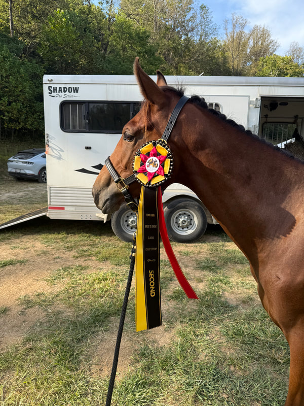 Doc is a 2016 dun Quarter Horse Ashley bought from an auction in 2024. Doc is a great jumper and the dressage judges love him! He is a cross country machine and has top placings at local horse trials. He has been an amazing addition to the lesson and lease program.