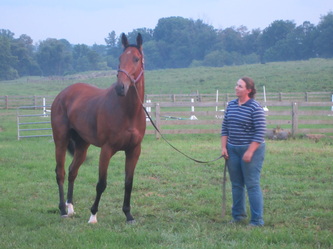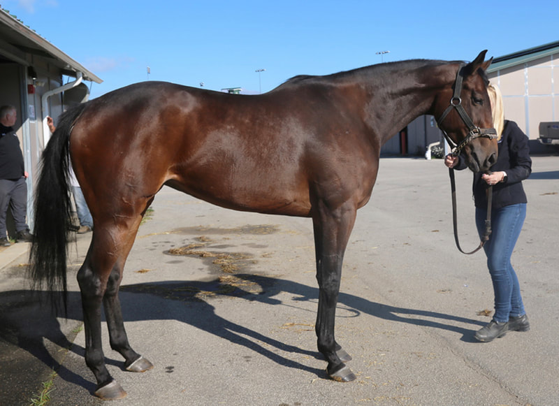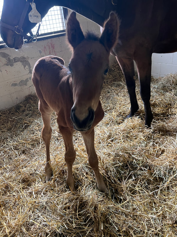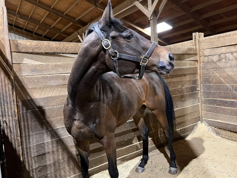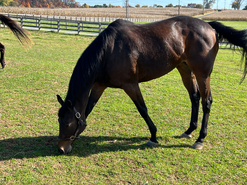 Ally is a bay 2014 OTTB mare Ashley bought off the track in November 2022 as a broodmare prospect. She made an easy transition to off-track life. We are looking forward to Ally's contributions to the breeding program! https://www.pedigreequery.com/at+least2