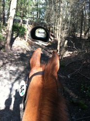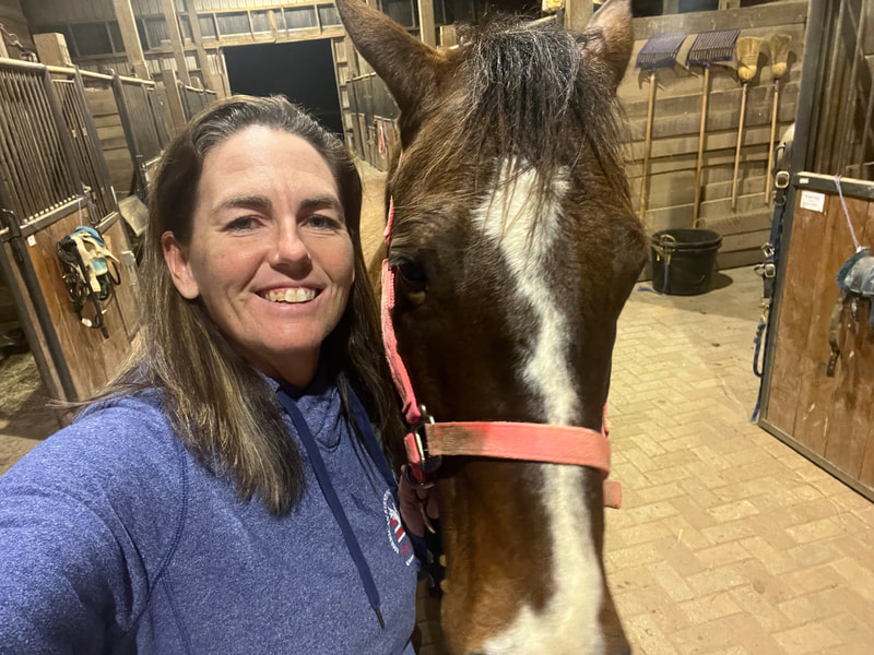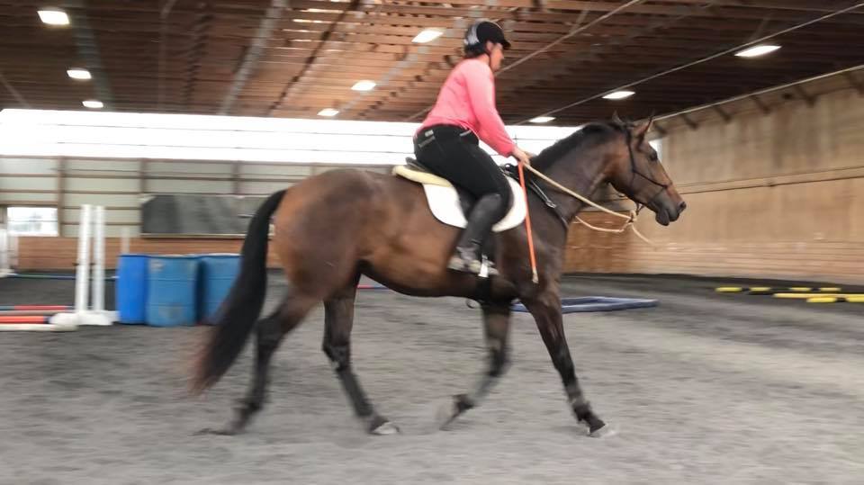 Nick is a 2008 Canadian Thoroughbred bay gelding Ashley bought off the track in July 2013 as an eventing prospect. He is 17.1 hands and a great-grandson of 1977 Triple Crown winner Seattle Slew on his dam's side and a great-grandson of Northern Dancer on his sire's side. He only raced six times and his best finish was third. He was well cared for and spoiled at the track, with his nighttime snack including peppermints, molasses and slices of carrots and apples. Ashley has evented him through Beginner Novice and hopes to do more. He is goofy, loves dogs and kids, and loves to roll in the arena sand. He helps out with the lesson program occasionally and he is a fun treat for his riders! http://www.pedigreequery.com/nehalem+bay