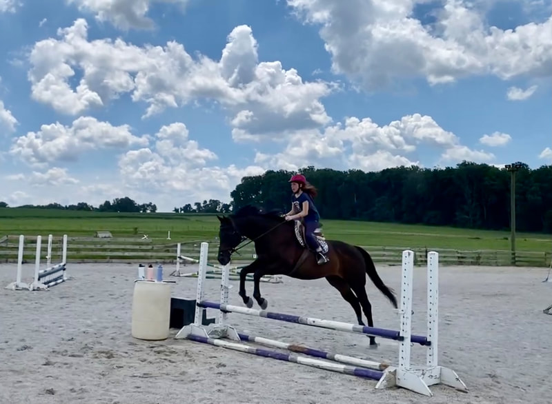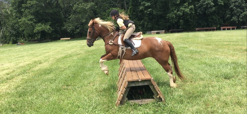 Lucy is a chestnut paint 2013 Suffolk Punch/Paint cross Ashley bought from an auction at the end of 2019. She came from an Amish farm where the kids rode and drove her to school. Once in her new home, she began learning about dressage and jumping and made her eventing debut in October 2020. Her amazing attitude and sweet disposition makes her a wonderful mount for riders of all levels.