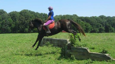 Diamond is a black 1996 Welsh/Quarter Horse cross pony owned by Carrie Bishop. Ashley first met Diamond and Carrie in 2004 when Ashley worked as an instructor at Hopkins Spring Farm. Geography and school separated Ashley and Carrie for a few years, but now Carrie is in graduate school and is sharing Diamond with Ashley and her students. Diamond is great with beginners and loves jumping. We look forward to working with Diamond in our lesson and lease program and hope to see her out at some shows soon.
