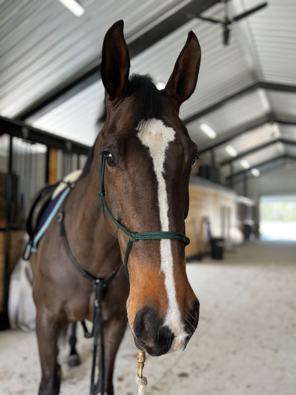 Narcos is a 2004 dark bay OTTB given to the lesson program by Ashley's longtime student Riley. With Riley, he evented through the Novice level before semi-retiring to the lesson horse life. He is a wonderful school master for our students looking to learn about dressage and jumping. He has taken students around their first horse trials and is known for his amazing canter and fun jumping style.