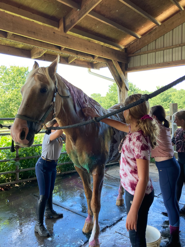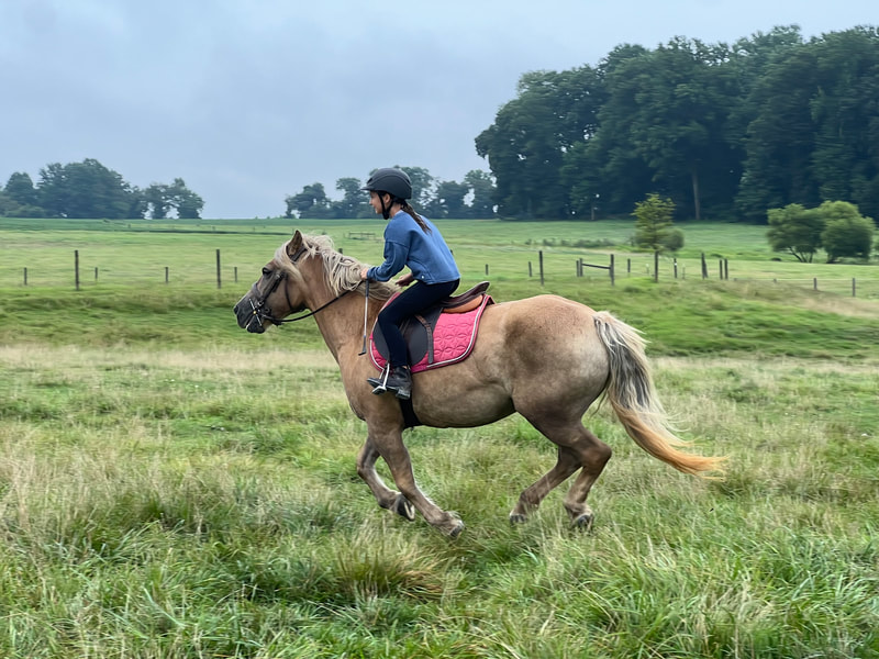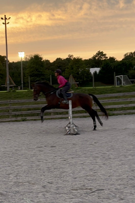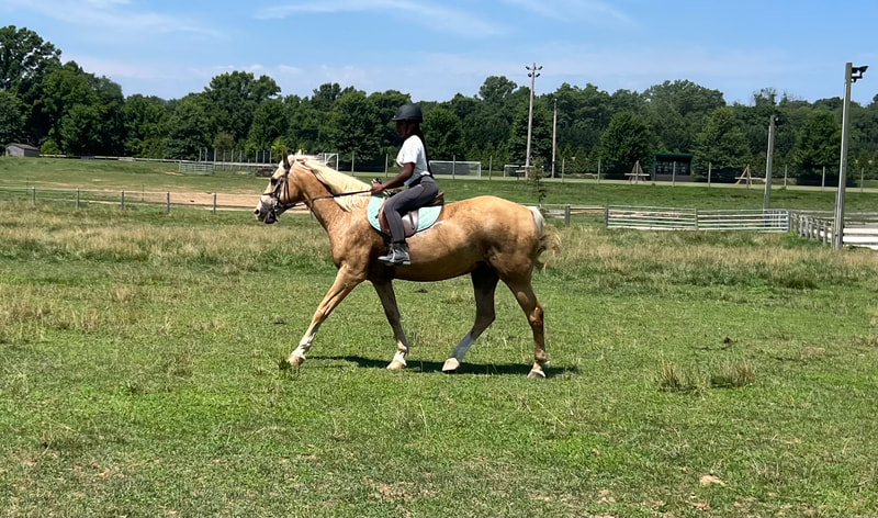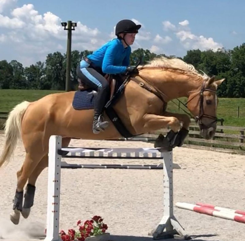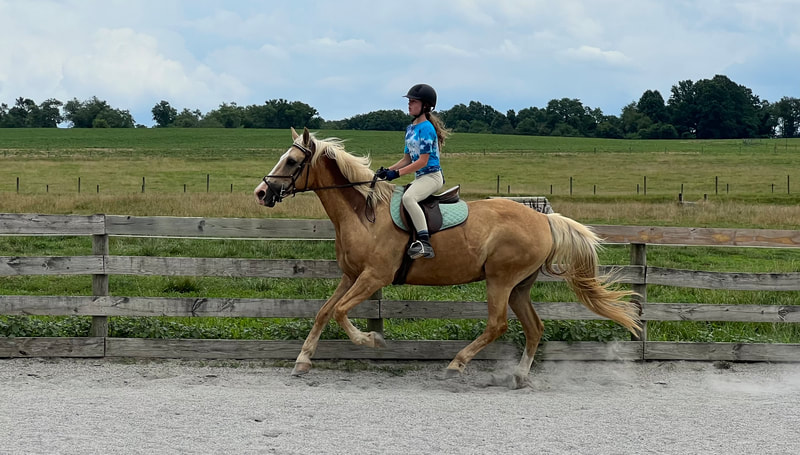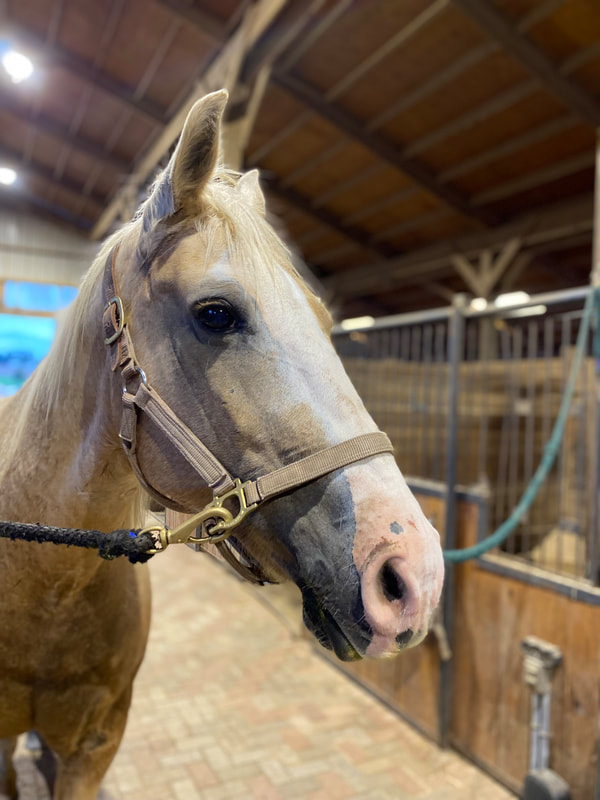 Phil is a 2012 Palomino American Cream Draft/Quarter Horse cross Ashley bought from an auction in 2021. He is a kind and forgiving lesson horse. He is known for his smooth gaits and excellent disposition in the field and on trails.
