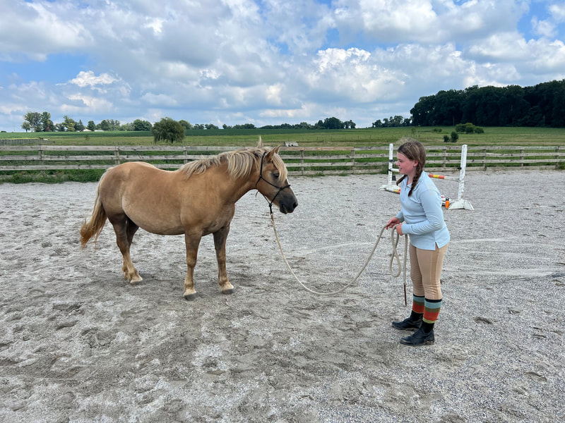 Daisy Mae is a 2011 Haflinger pony Ashley bought from an auction in 2023. She went right to work in the lesson program and has become a favorite for many of our students.
