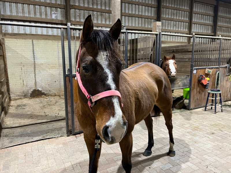 Doc is a 2016 dun Quarter Horse Ashley bought from an auction in 2024. He has settled in with his fellow lesson horses well and has already started doing lessons regularly. We are looking forward to seeing him do more lessons, his first Xtreme Weeks, and hopefully compete at some horse trials this year.
