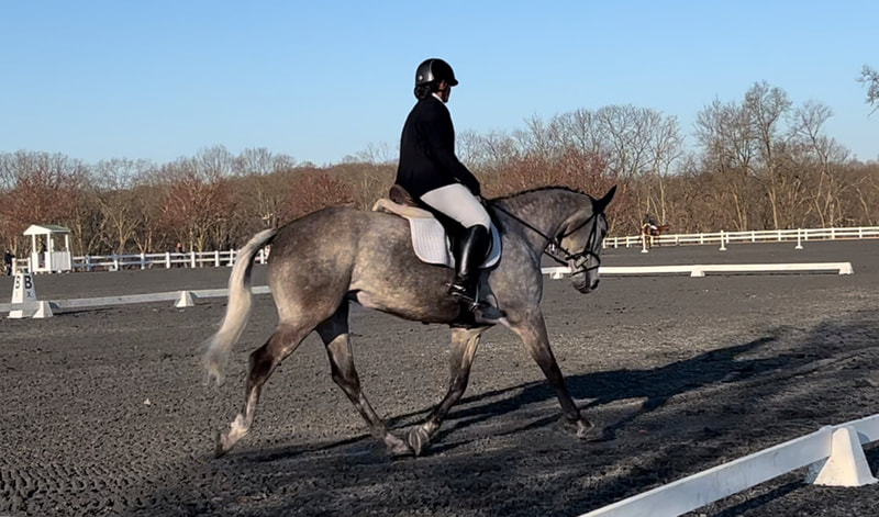 Jubilee is a grey filly by Riverman out of Ashley's long-time eventing partner Noblesse Oblige. She is Ashley's first homebred. She was born March 9, 2014 and is registered with the KWPN-NA. She received a First Premium Rating at her Keuring in September 2014. Jubilee qualified for the 2015 and 2016 USEA Future Event Horse East Coast Championships. In 2015, she received a score of 76.7 and placed 5th in the yearling fillies division and in 2016 she received a score of 74.3 and placed 6th in the 2-year old fillies division. Jubilee is sweet to everyone she meets, loves scratches and has her mother's ears and appetite. Her eventing career is well underway with finishes at Beginner Novice and Ashley is looking forward to moving her up the levels!