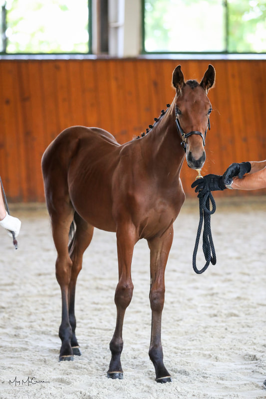 Isochromatic is a registered, microchipped, Oldenburg/ISR bay colt by Iceman de Muze (Belgian Warmblood) out of At Least (OTTB) born on April 5, 2024. He is expected to mature around 17H. Ike's sire is a Grand Prix show jumper and his dam retired sound from the track as an 8 year old with 41 starts. He was purpose bred for eventing, but has the potential to go in any direction. At the Oldenburg/ISR inspection, he received an 8 on movement and 7.9 on overall type. He is sweet and loves attention and scratches. Ike has been handled daily and gets plenty of turnout with a small herd. He will be available after weaning in October.